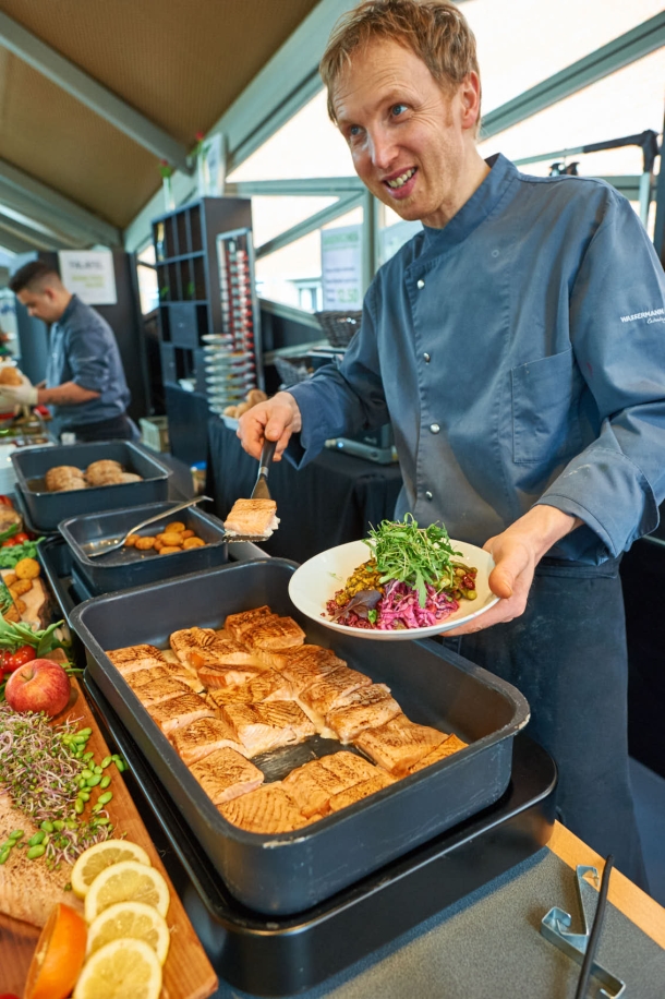 Damit es schnell geht, müssen die Abläufe stimmen. Wir bieten Klassiker wie Bratwurst und Bier, aber auch Streetfood-Trends wie Salted Beef Burger, Poke Bowls oder Thai Currys an.